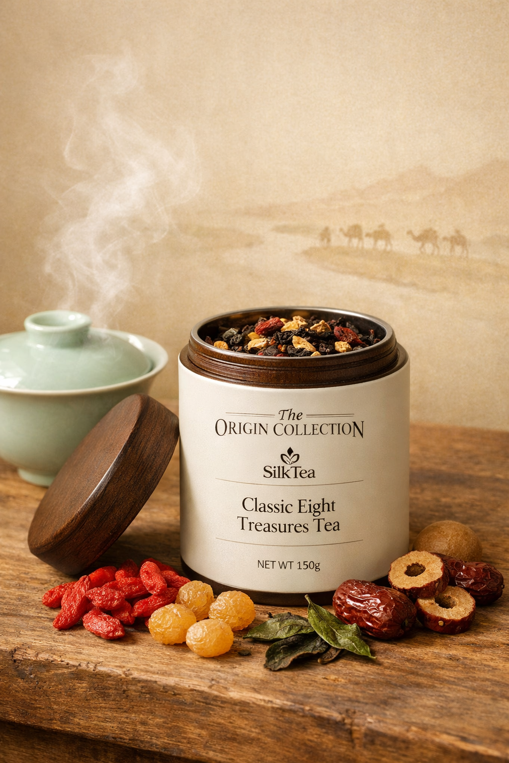 Faithfully crafted from the ancient Ningxia recipe, this blend features eight natural ingredients including wolfberries, longan, and red dates sourced along the Yellow River. Each sip carries the authentic heritage of the Silk Road tea culture—a daily ritual for nourishment and harmony.